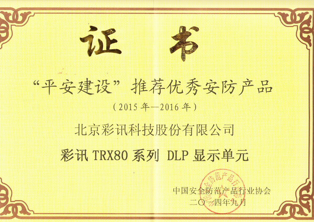 平安建設推薦優(yōu)秀安防產品證書